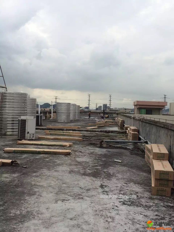 虎門速爾物流1000多人宿舍50匹40噸太陽能+空氣能熱泵熱水工程項目采用:600平方(75組)浩通太陽能熱水器(ZZB8.0-50BCG) 及5臺高溫直熱循環(huán)型空氣能熱泵機組KFXRS-38Ⅱ(GT-SKR100)、10噸保溫水箱4個及其它熱泵熱水工程相關(guān)輔件。